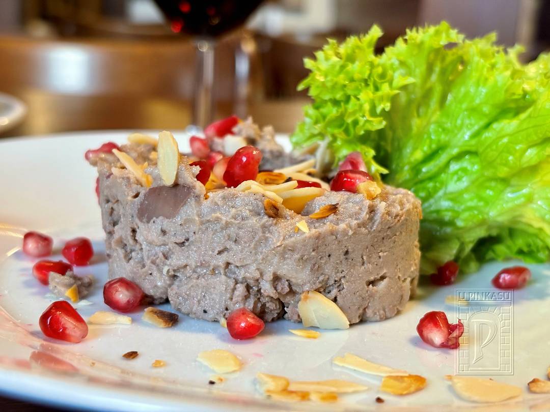 - 100g Husích jater v sádle s granátovým jablkem a praženými lupínky mandlí … 169,-Kč