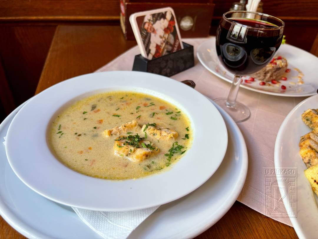 - 0,25l Drůbeží kaldoun se zeleninou a žemlovým knedlíkem … 119,-Kč